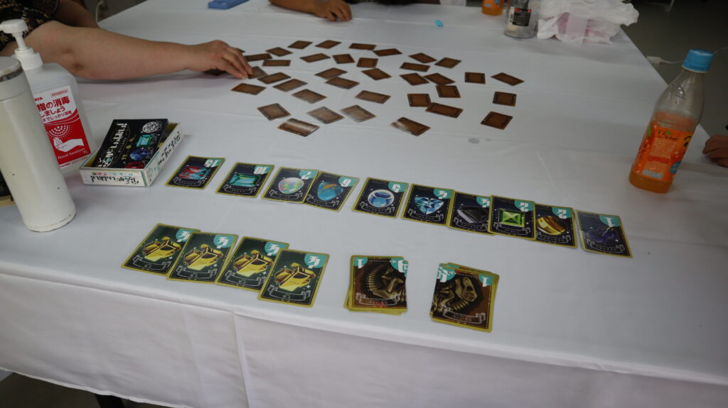 きょうだい児向けイベントで、きょうだい児とボランティアの大人でカードゲームを楽しむ様子です。